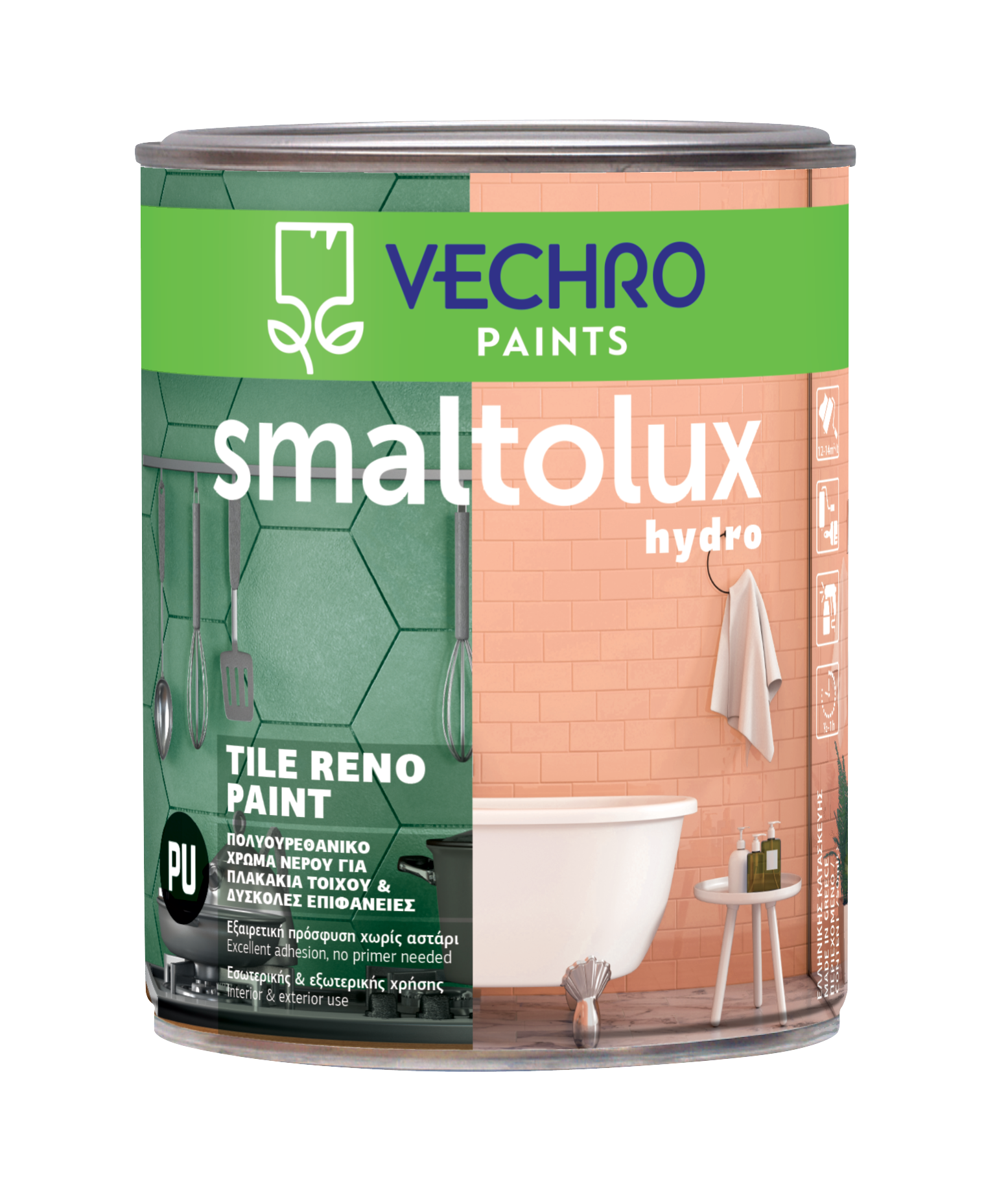 Специально разработанный однокомпонентный акриловый полиуретановый (ПУ) продукт на водяной основе для сложных поверхностей. Обладает отличной сцепкой с непористыми поверхностям и устойчивостью к воздействию химических веществ. Благодаря особому составу, данный продукт идеально подходит для обработки внутренних поверхностей, таких как: настенная плитка, мозаика, стеклянный кирпич, керамика, а также мебель для кухни и ванной комнаты, включая поверхности из меламина, металла, дерева (гладкого, лакированного или окрашенного), шкафы, алюминий, оцинкованное железо, ламинат, ДВП, ПВХ и стекло. *Не рекомендуется использование на горизонтальных поверхностях и поверхностях, на которых скапливается стоячая вода. Продукт устойчив к воздействию воды, мягких бытовых чистящих средств, ударам и царапинам. Идеально подходит для ремонта помещений, таких как кухня, ванная комната и т.д., так как обладает превосходной механической прочностью, сцеплением и не отслаивается. Продукт обеспечивает отличное покрытие, легкость нанесения и износостойкость. Грунтовка не требуется, так как продукт можно наносить непосредственно на выбранную поверхность. Краска Smaltolux Tile Reno может быть окрашена в тысячи оттенков, благодаря системе окрашивания VECHRO Color Moods.