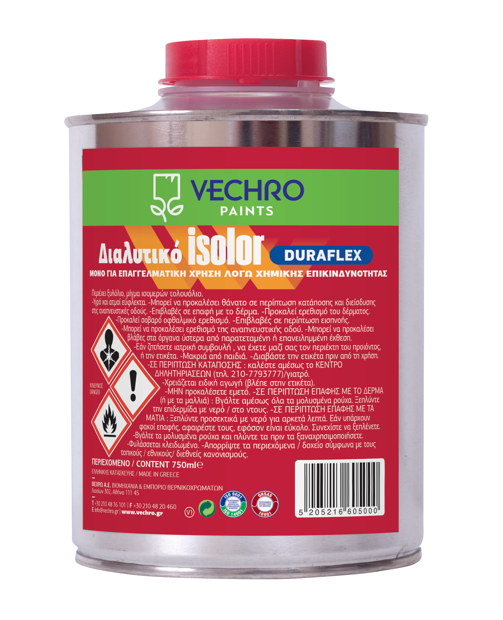Прозрачный ароматизированный разбавитель. Продукт может использоваться в качестве разбавителя для продукта Isolor Duraflex. ТОЛЬКО ДЛЯ ПРОФЕССИОНАЛЬНОГО ИСПОЛЬЗОВАНИЯ ИЗ-ЗА ХИМИЧЕСКОЙ ОПАСНОСТИ
